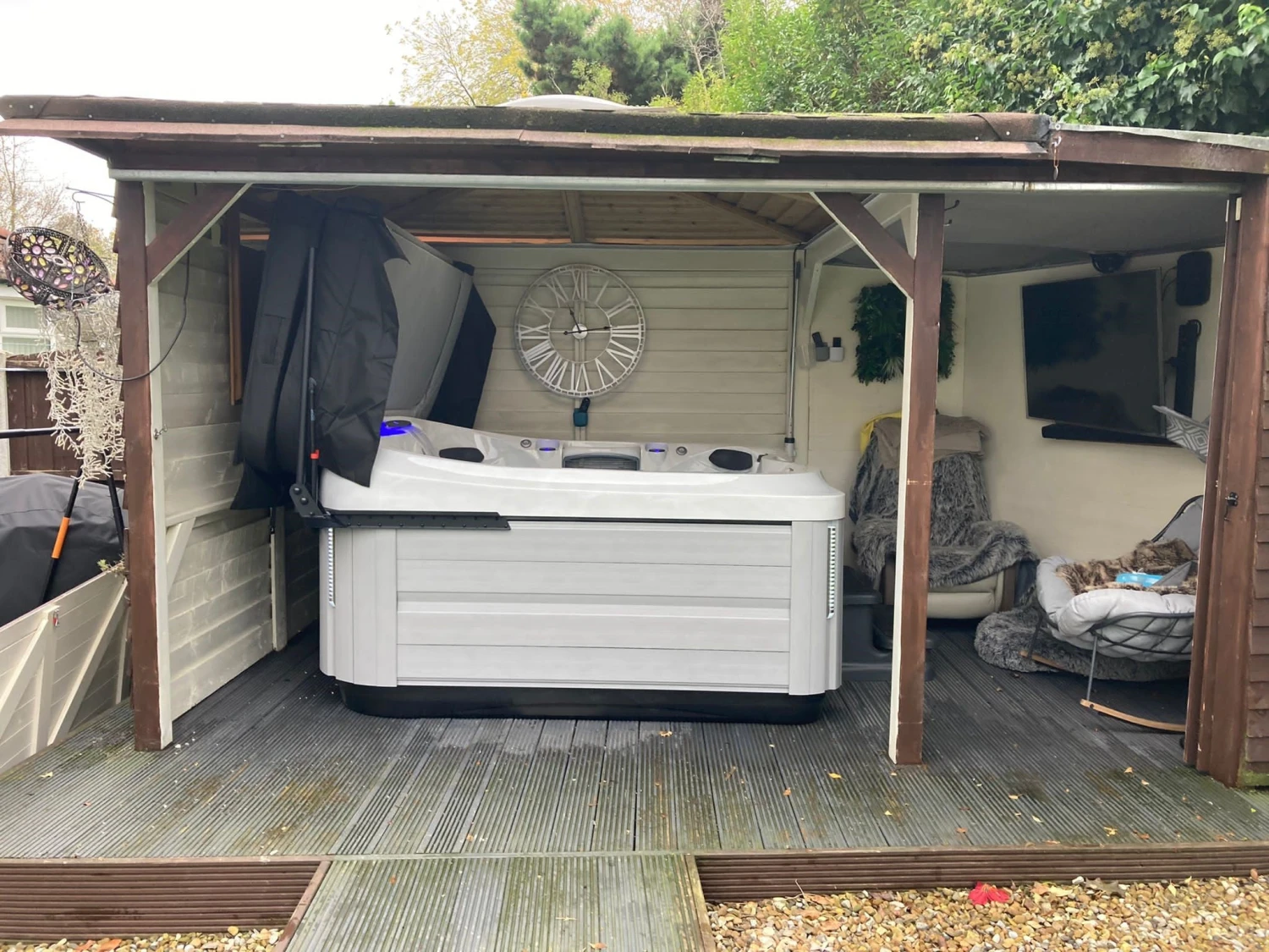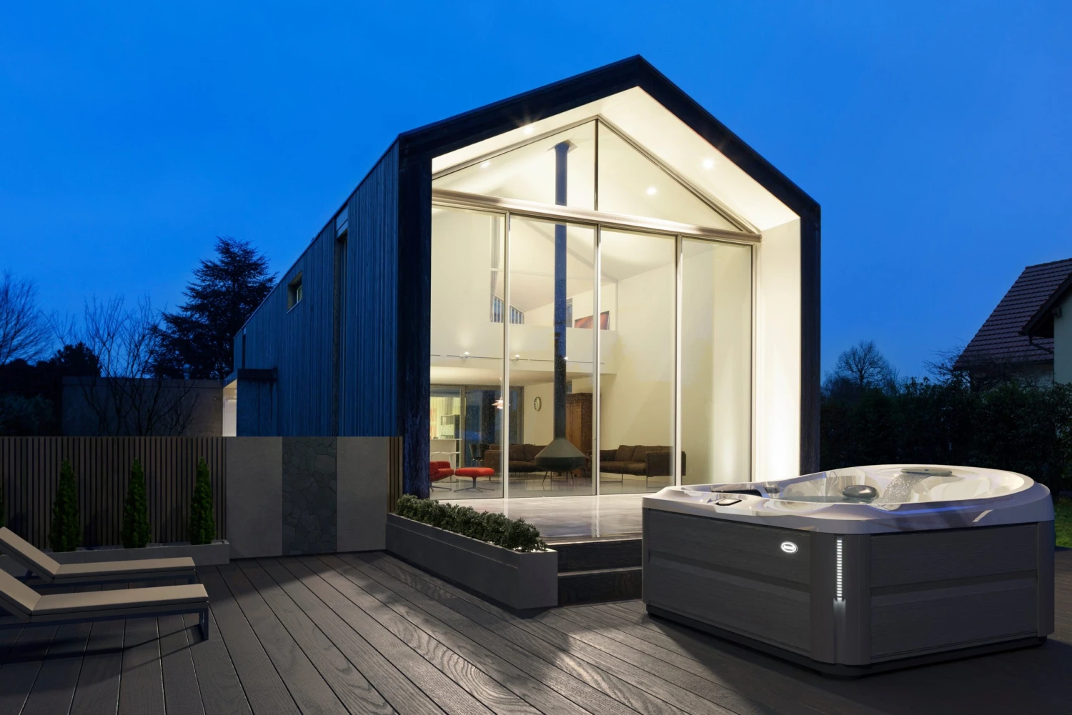 - 6-person hot tub with one full-body lounger