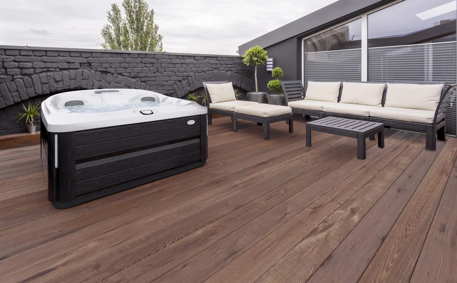 47 PowerPro™ jets are ideally placed for everyone to enjoy classic Jacuzzi® hydromassage. Each seat features integrated PowerPro® jets for tailored treatment and a luxurious full-body hydromassage. Enjoy an invigorating upper back massage with a soothing sheet of water over your shoulders in the jetted waterfall seat or relax in the cool-down seat that’s unique to this model.