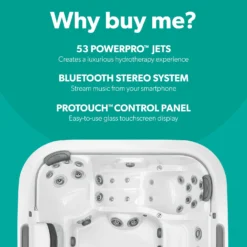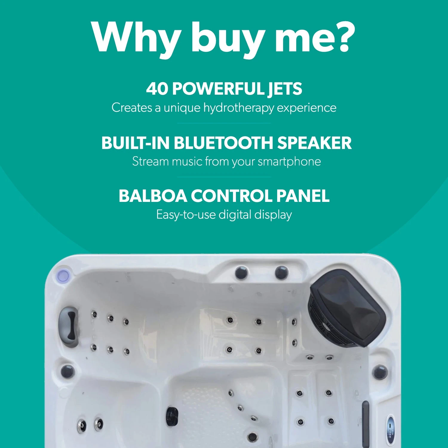 Not only is this tub beautifully designed, its features and technology mean there’s something for everybody. There are multi-coloured lighting effects, a built-in Bluetooth music system to listen to your favourite tunes, low profile easy entry and a choice of seating. Plus, the ozone purification system keeps your water cleaner for longer, so you can enjoy it for longer.