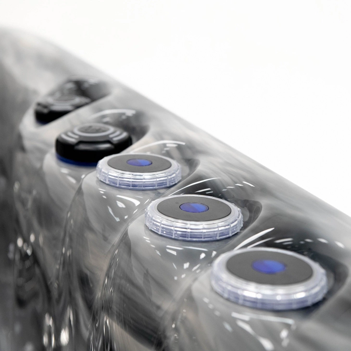 49 rotating and directional jets have been placed in a specific formation for various muscle groups in each seat so you can focus on key areas to suit your needs. There’s even a selection of diverters placed around your hot tub to give you complete control of pressure and jet selection using the control panel. The LED-backlit water fountain adds to your well-being journey.